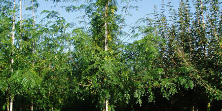 De Gleditsia triacanthos Skyline wordt circa 20 meter hoog die een vrij gesloten, compacte tot eironde kroon krijgt. Het blad is donkergroen en geveerd circa 25 cm groot en de bloemen zitten in lichtgroene trosjes en komen in juni/juli. Je kunt gerust stellen dat de Gleditsia triacanthos Skyline nagenoeg geen vruchten krijgt. Deze boom heeft geringe bodemeisen en kan goed tegen de wind. De Gleditsia triacanthos Skyline is een geschikte boom voor laan- en straatbeplanting.