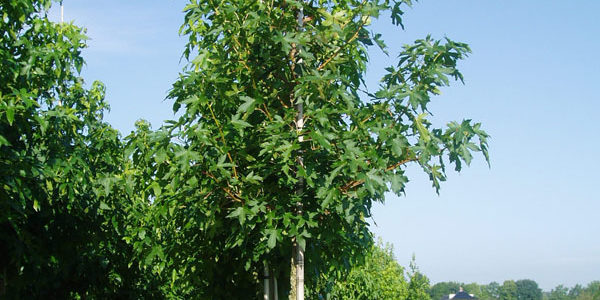 De Liquidambar styraciflua amberboom kan circa 30 meter hoog worden en heeft een piramidale kroon. De stam van deze boom heeft dikke kurklijsten. Het blad van de Liquidambar styraciflua amberboom is handvormig ± 15 cm groot en glanzend groen die in de herfst naar allerlei kleuren veranderd wijnrood, geel, oranje en violet. De bloemen zijn onopvallend en de vruchten zijn ± 3 cm grote stekelige zaaddozen. De Liquidambar styraciflua amberboom is een echte straat- en laanboom maar is ook er mooi als solitair in grot tuin en park.